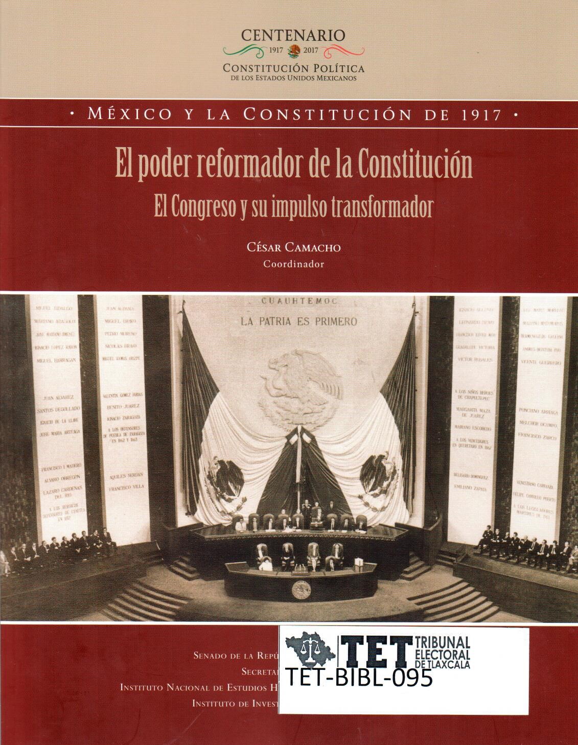 El poder reformador de la constitución Autor: Coordinador César Camacho; presentación Patricia Galeana Editorial:  H. Cámara de Diputados, LXIII Legislatura, Secretaría de Cultura, Instituto Nacional de Estudios Históricos de las Revoluciones de México Año de edición: 2016 Páginas: 195