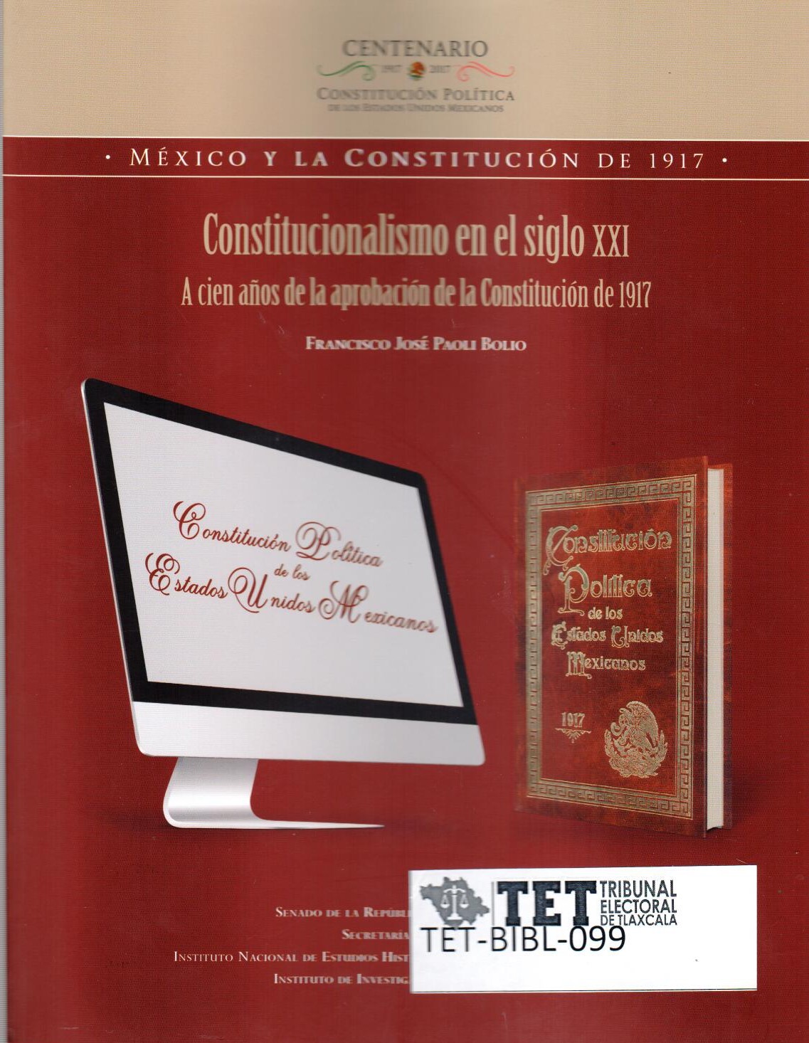 Centenario de la constitución de 1917-México y la constitución de 1917; Constitucionalismo en el Siglo XXI a cien años de la aprobación de la Constitución de 1917 Autor: Paoli Bolio, Francisco josé Editorial: Secretaría de Cultura Año de edición: 2017 Páginas: 205