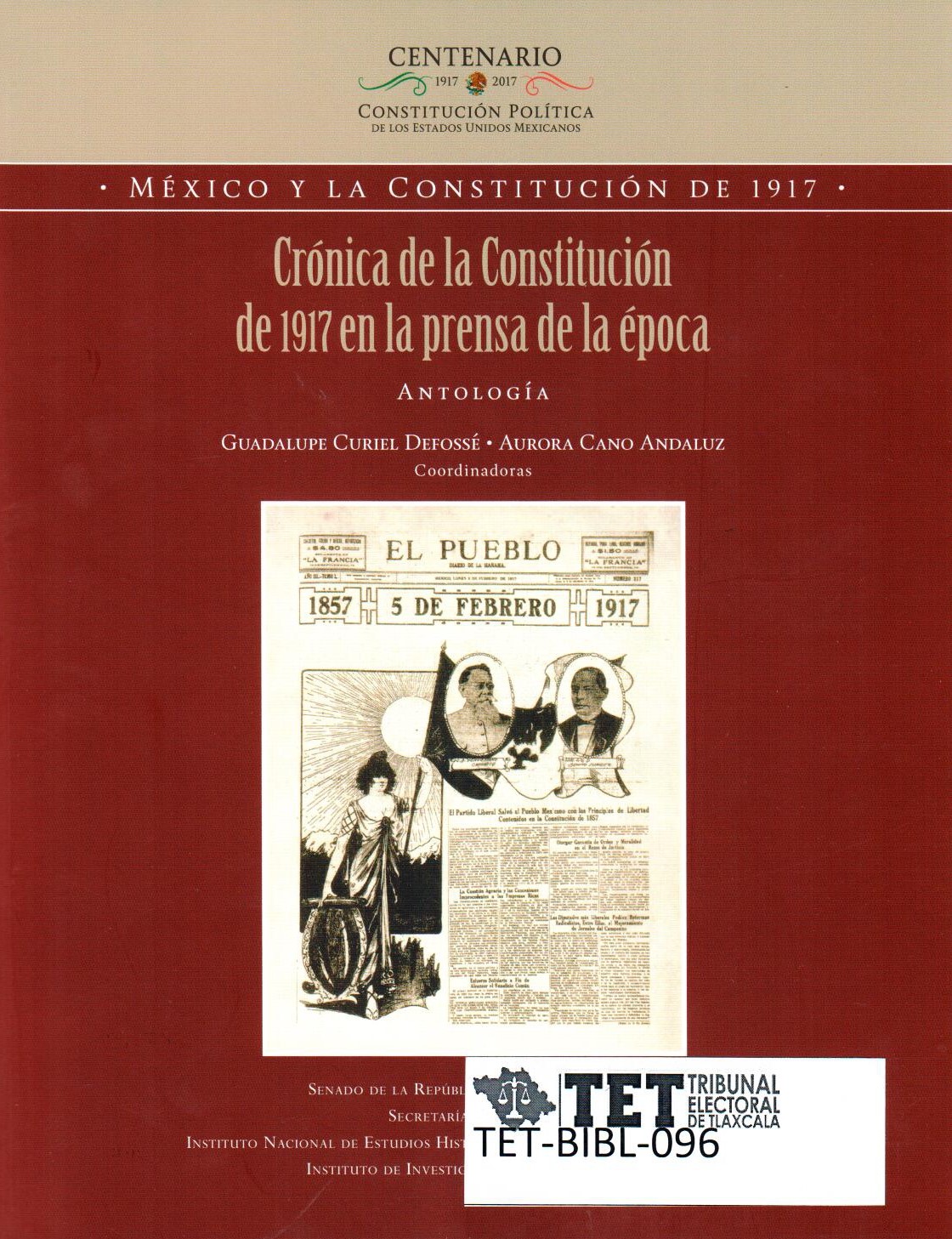 Centenario de la constitución de 1917-México y la constitución de 1917; Crónica de la Constitución de 1917 en la prensa de la época Autor: Curiel Deffosser, Guadalupe Editorial: Secretaría de Cultura Año de edición: 2017 Páginas: 267