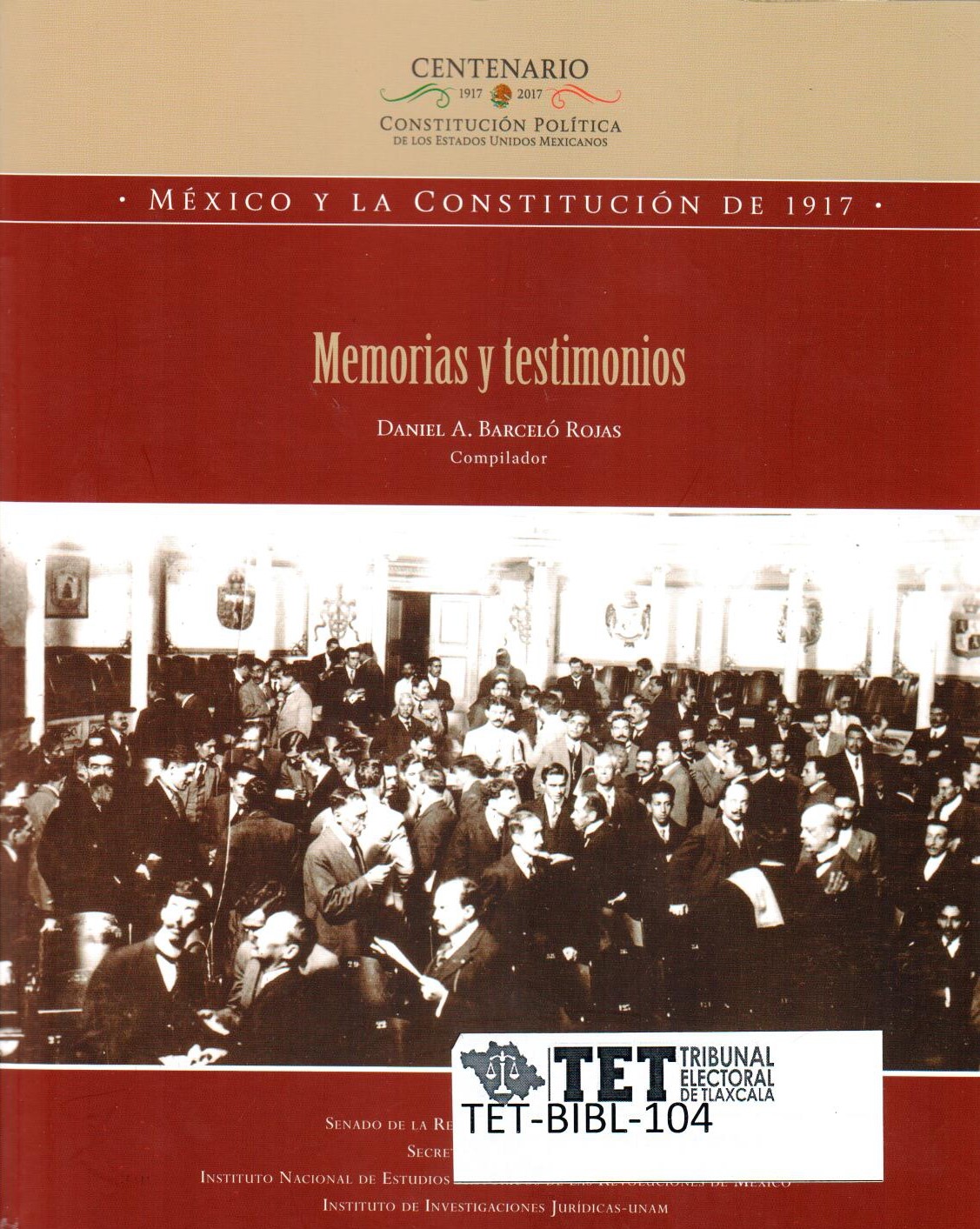 Centenario de la constitución de 1917-México y la constitución de 1917; Memorias y testimonios Autor: Barcelo Rojas, Daniel A Editorial: Secretaría de Cultura Año de edición: 2017 Páginas: 679