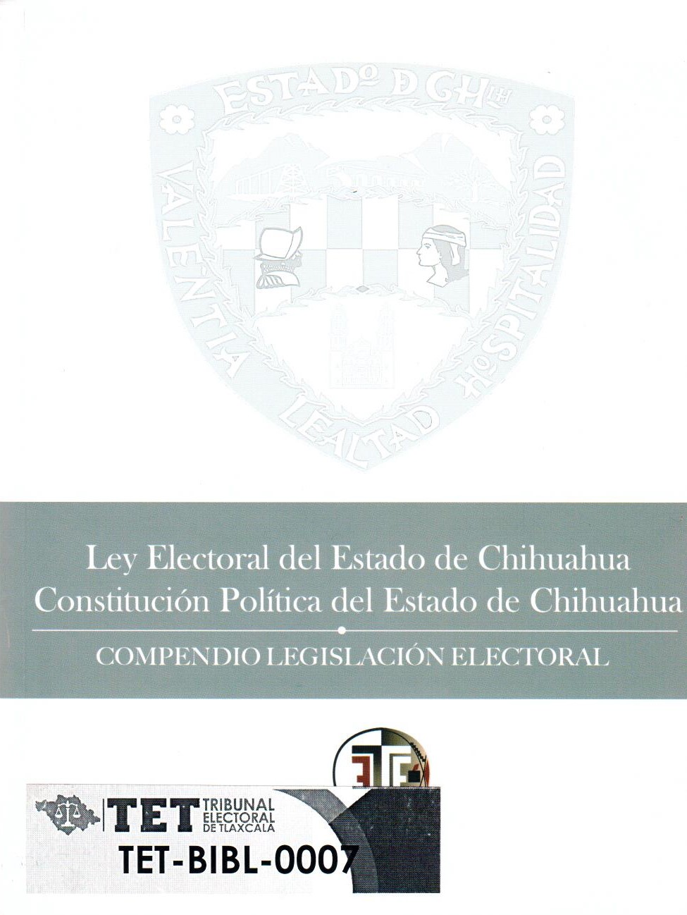 Compendio Legislación Electoral; Ley Electoral del Estado de Chihuaa, Constitución Política del Estado de Chihuahua.Tomo I Autor: Editorial: Tribunal Estatal del Estado de Chihuahua Año de edición: 2016 Páginas: 249