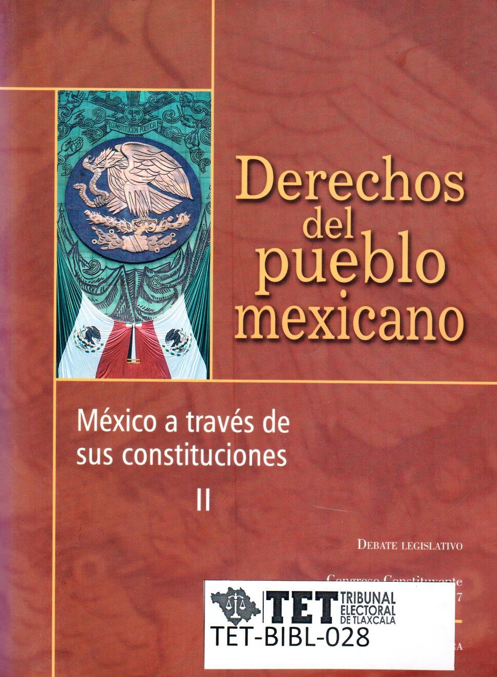 Derechos del pueblo mexicano: México a través de sus constituciones; Tomo II Autor: Miguel Ángel Porrúa Editorial: Miguel Ángel Porrúa Año de edición: 2006 Páginas: 1055