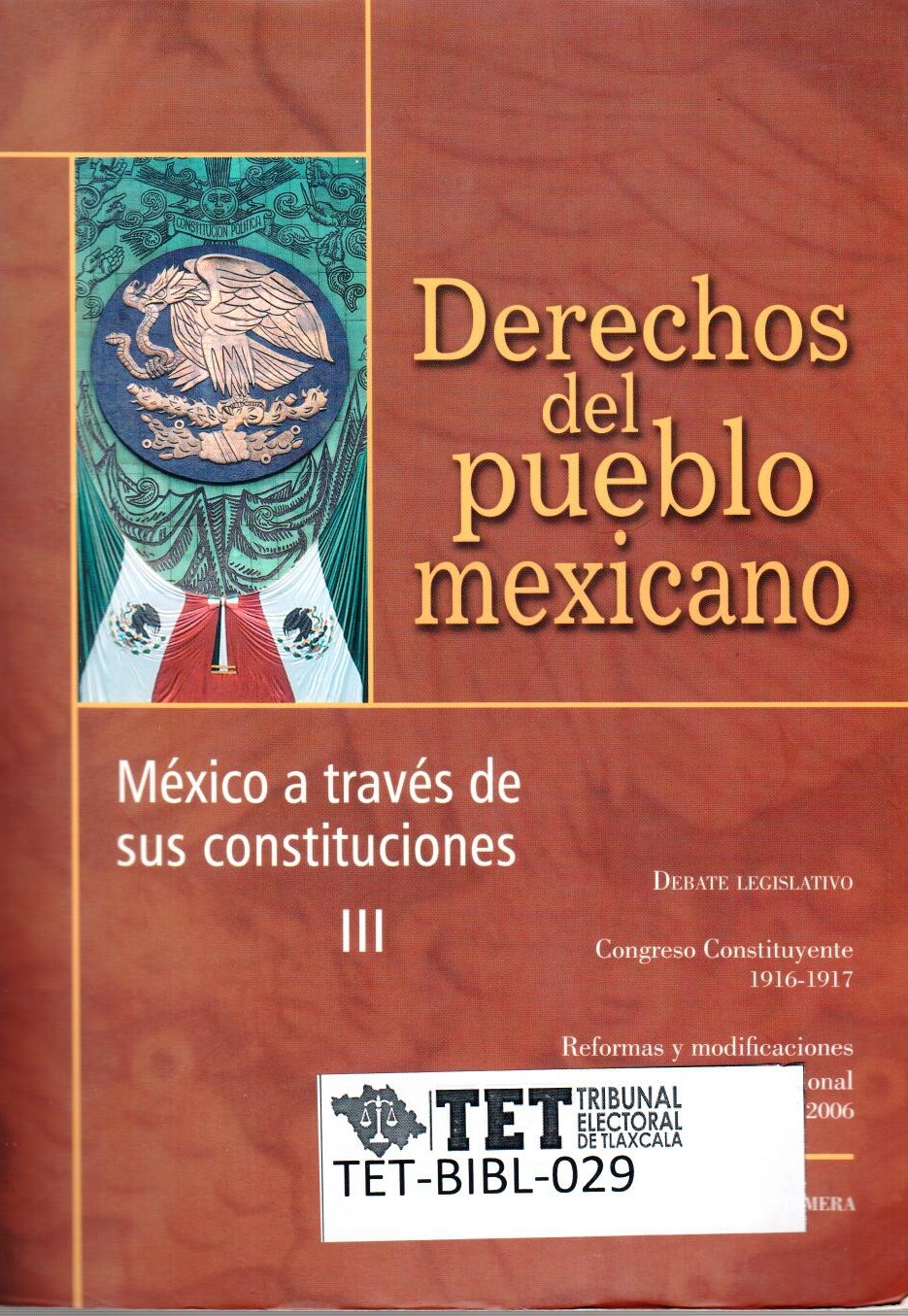 Derechos del pueblo mexicano: México a través de sus constituciones; Tomo III Autor: Miguel Ángel Porrúa Editorial: Miguel Ángel Porrúa Año de edición: 2006 Páginas: 1025