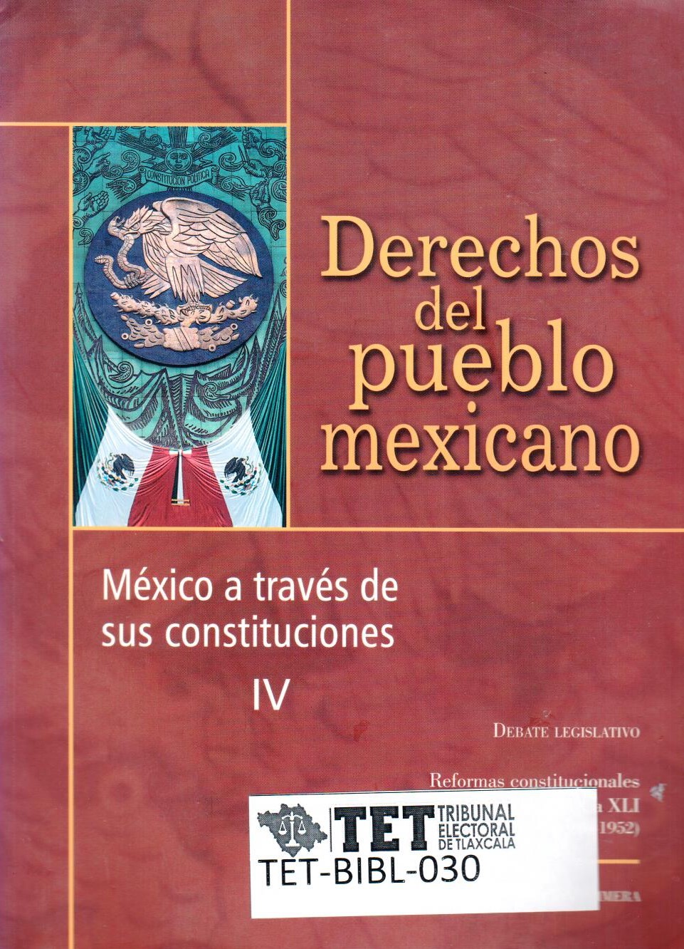 Derechos del pueblo mexicano: México a través de sus constituciones; Tomo IV Autor: Miguel Ángel Porrúa Editorial: Miguel Ángel Porrúa Año de edición: 2006 Páginas: 1129