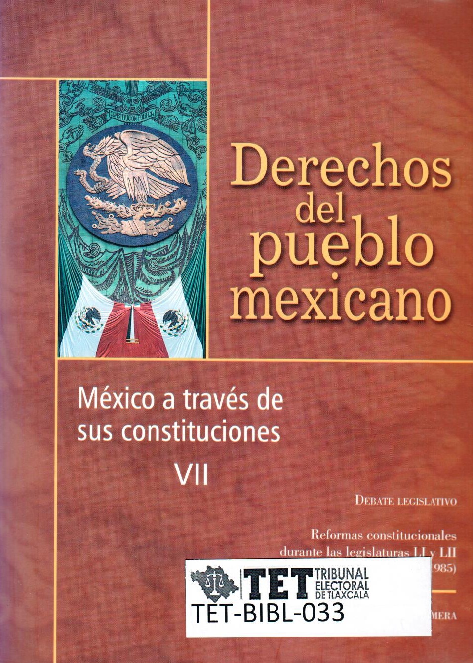 Derechos del pueblo mexicano: México a través de sus constituciones; Tomo VII Autor: Miguel Ángel Porrúa Editorial: Miguel Ángel Porrúa Año de edición: 2006 Páginas: 1015