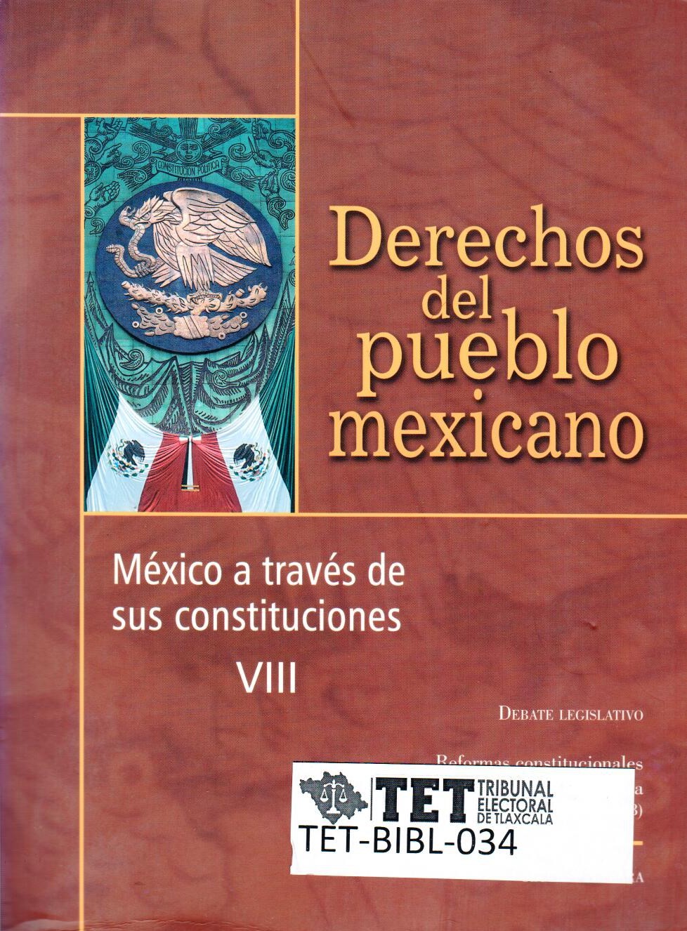 Derechos del pueblo mexicano: México a través de sus constituciones; Tomo VIII Autor: Miguel Ángel Porrúa Editorial: Miguel Ángel Porrúa Año de edición: 2006 Páginas: 1056