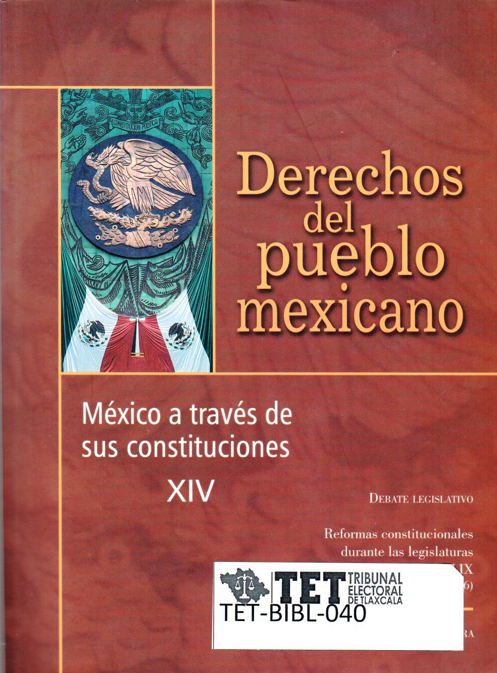 Derechos del pueblo mexicano: México a través de sus constituciones; Tomo XIV Autor: Miguel Ángel Porrúa Editorial: Miguel Ángel Porrúa Año de edición: 2006 Páginas: 655