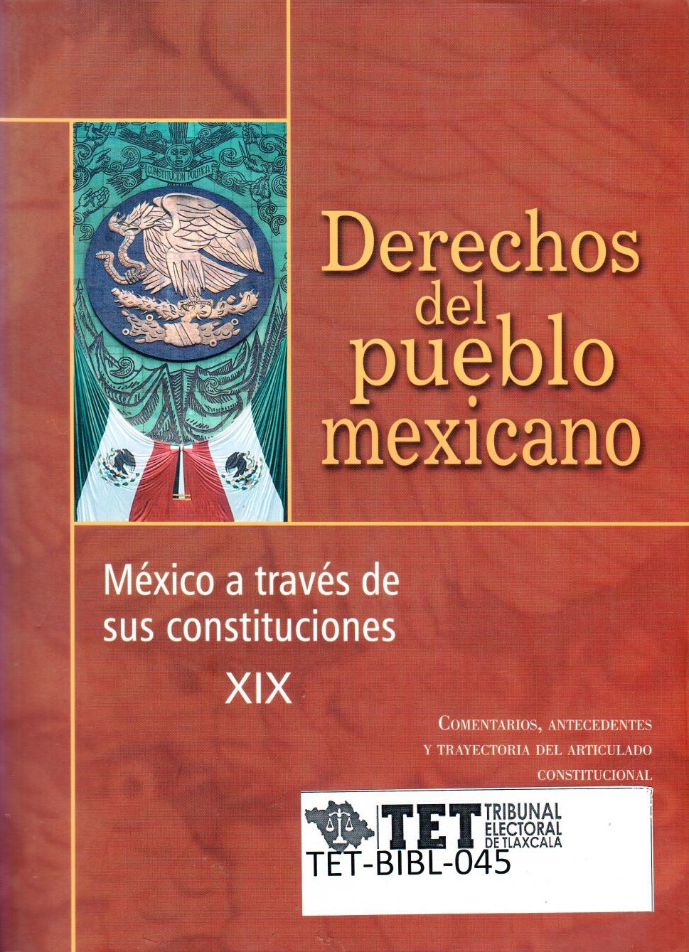 Derechos del pueblo mexicano: México a través de sus constituciones; Tomo XIX Autor: Miguel Ángel Porrúa Editorial: Miguel Ángel Porrúa Año de edición: 2006 Páginas: 975