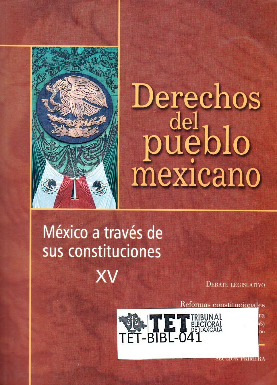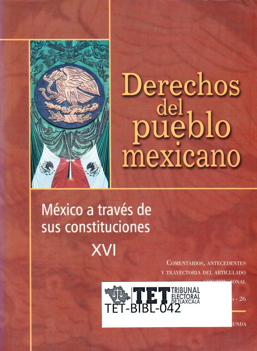 Derechos del pueblo mexicano: México a través de sus constituciones; Tomo XV Autor: Miguel Ángel Porrúa Editorial: Miguel Ángel Porrúa Año de edición: 2006 Páginas: 711